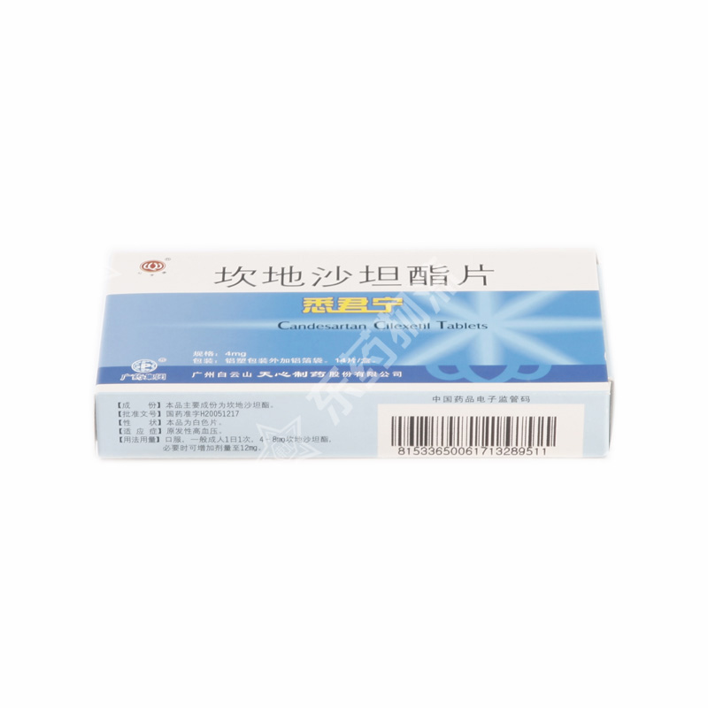 注意事项: 1、慎重用药(下列患者应慎重用药)(1) 有药物过敏史的患者。(2) 有肝功能障碍的患者(有可能使肝功能恶化。并且,据推测活性代谢物坎地沙坦的清除率降低,因此应从小剂量开始服用,慎重用药)(参照【药代动力学】项)。(3) 有严重肾功能障碍的患者(由于过度降压,有可能使肾功能恶化,因此1日1次,从2 mg开始服用,慎重用药)。(4) 有双侧肾动脉狭窄的患者(有可能 使肾功能恶化)。(5) 老年患者(参照【老年患者用药】项)。2、重要的基本注意事项(1) 由于服用本制剂,有时会引起血压急剧下降,特别对下列患者服用时,应从小剂量开始,增加剂量时,应仔细观察患者的状况,缓慢进行。a. 进行血液透析的患者。b. 严格进行限盐疗法的患者。c. 服用利尿降压药的患者(特别是最近开始服用利尿降压药的患者)。(2) 因降压作用,有时出现头昏、蹒跚,故进行高空作业、驾驶车辆等操作时应注意。 (3) 手术前24小时最好停止服用。(4) 药物交付时:PTP包装的药物应从PTP薄板中取出后服用(有报道因误服PTP薄板坚硬的锐角刺入食道粘膜,进而发生穿孔,并发纵隔炎等严重的合并症)。