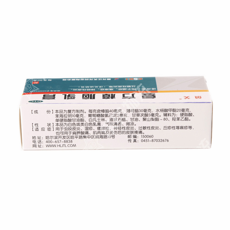 成份: ​本品为复方制剂。每克含樟脑40毫克,薄荷脑30毫克,水杨酸甲酯20毫克,苯海拉明10毫克,葡萄糖酸氯己定2毫克,甘草次酸3毫克。辅料为:硬脂酸、单、双硬脂酸甘油酯、白凡士林、甘油、聚山梨酯80、羟苯乙酯。