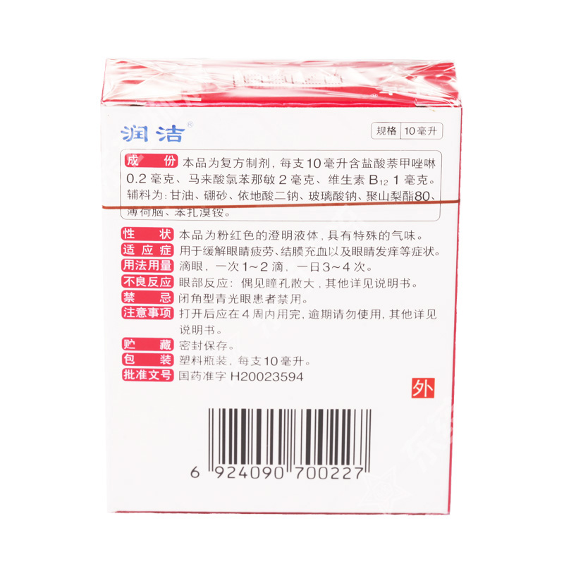 | 通用名称: | 萘敏维滴眼液(润洁滴眼液红盒)(萘扑维) |