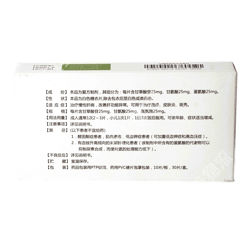 | 成份: | 甘草酸单铵盐、甘草酸苷、甘氨酸、甲硫氨酸。 |