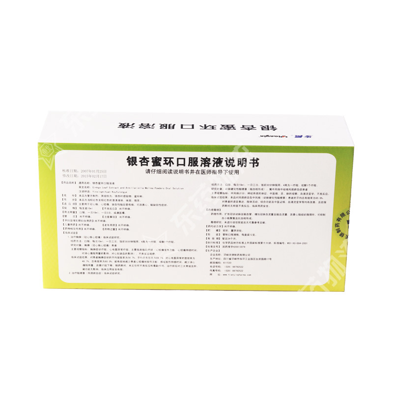 | 成份: | 本品为复方制剂,其组份为:银杏叶提取物、蜜环粉。 |