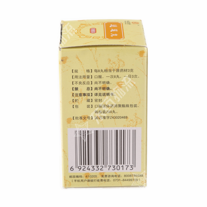 | 用法用量: | 口服,一次8丸,一日3次。 |