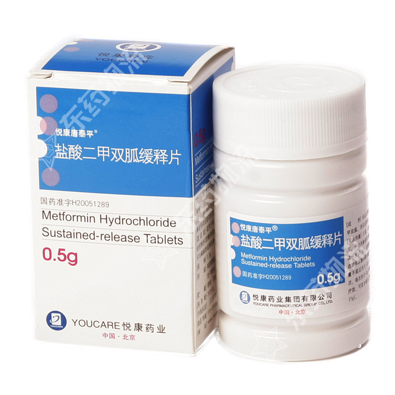 | 注意事项: | 1.在使用二甲双胍的病人中,由于二甲双胍的累积有可能发生乳酸性酸中毒,这是一种罕见而严重的代谢性并发症,一旦发生,则会导致生命危险,因此对服用本品的患者,应进行肾功能监测和给药以最低有效用量为标准,从而来显著降低乳酸性酸中毒的发生风险。2.本品禁止嚼碎口服,应整片吞服,并在进食时或餐后服用。 3.当患者需要进行放射性研究而使用静脉注射碘化造影剂时,患者应暂时停止服用本品,因为这可能导致急性肾功能改变。 4.本品与磺酰脲类药物合用时,可引起低血糖、应监测患者血糖情况。 5.本品与胰岛素合用会增强降血糖作用,故应调整剂量。 6.应定期监测血糖、糖化血红蛋白、尿糖、尿酮体情况。 7.部分病人发现在临床无症状的情况下,维生素B12的水平低于正常值,这可能是由于二甲双胍干扰了维生素B12的吸收,这可能导致贫血,虽然可能性很小,但仍建议监测血象,患者至少每年检查一次血液参数。 8.本品与乙醇同服时会增强盐酸二甲双胍对乳酸代谢的影响,易导致乳酸性酸中毒发生,因此,服用本品时应尽量避免饮酒。 9.发生皮疹等过敏反应者应停止使用本品。 |